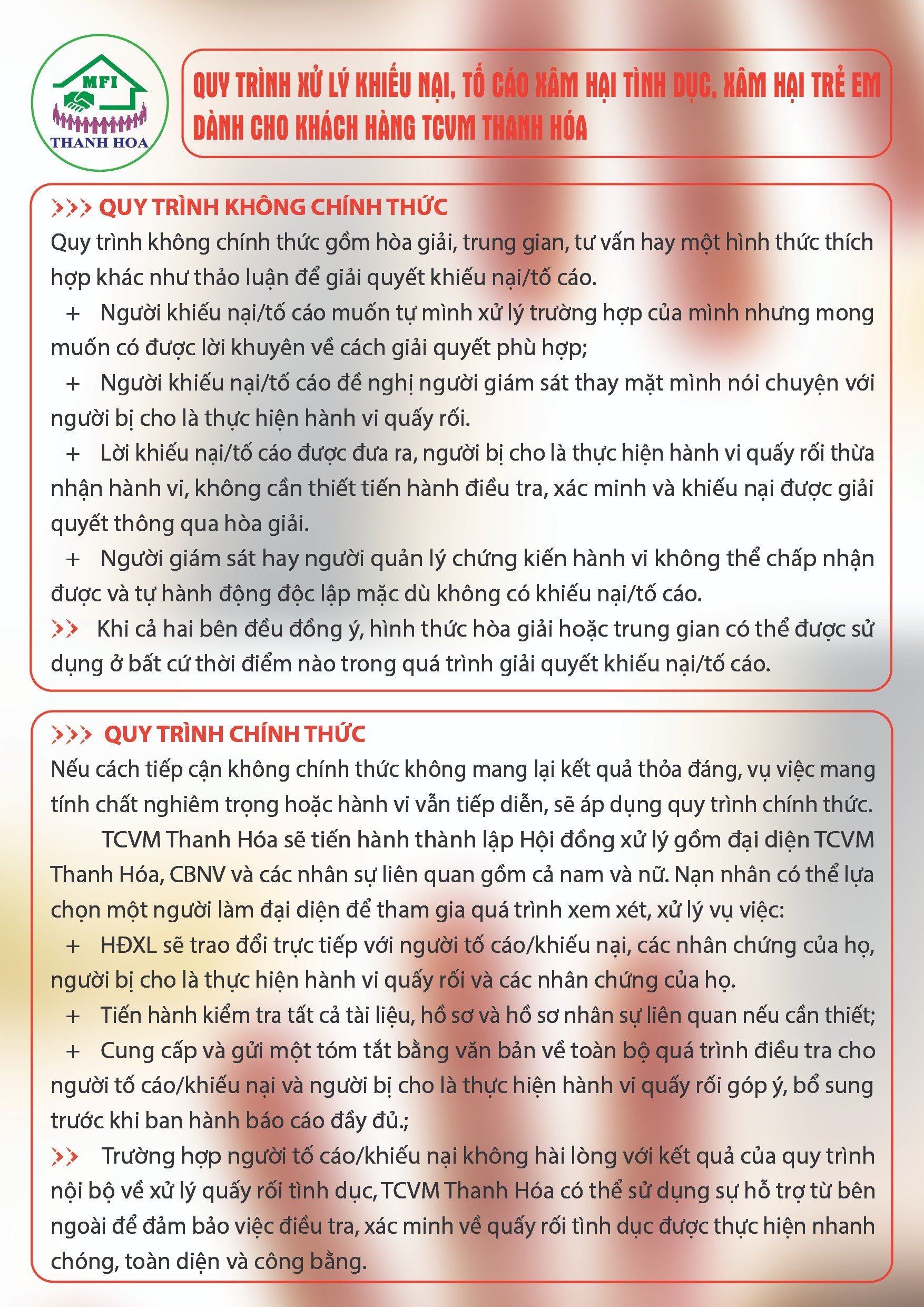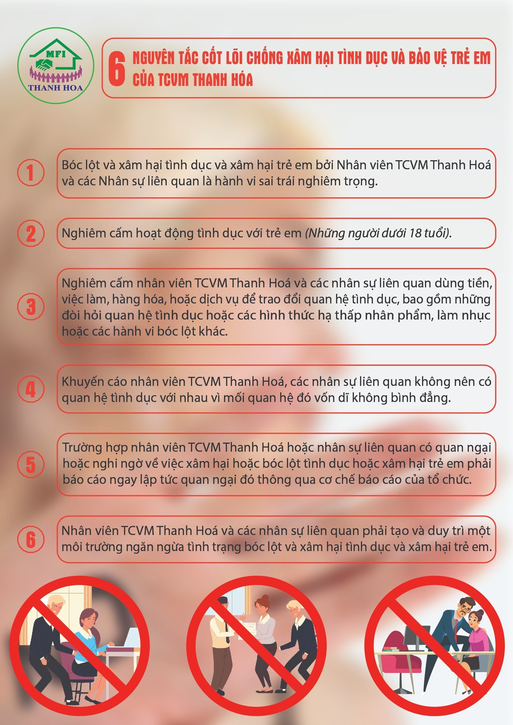 6 nguyên tắc cốt lõi chống xâm hại tình dục và bảo vệ trẻ em của TCVM Thanh Hoá. Quy trình xử lý khiếu nại, tố cáo xâm hại trẻ em dành cho khách hàng TCVM Thanh Hoá