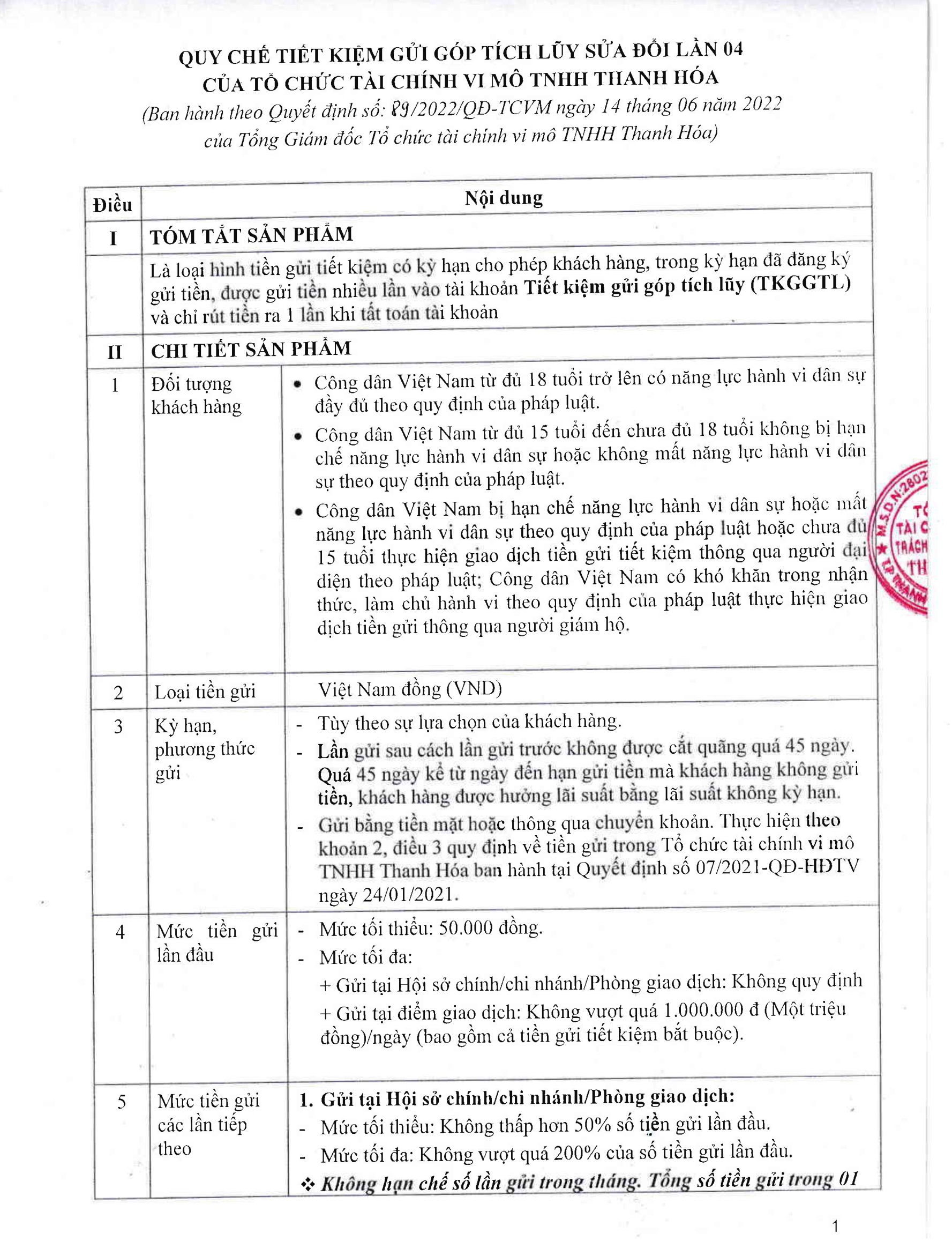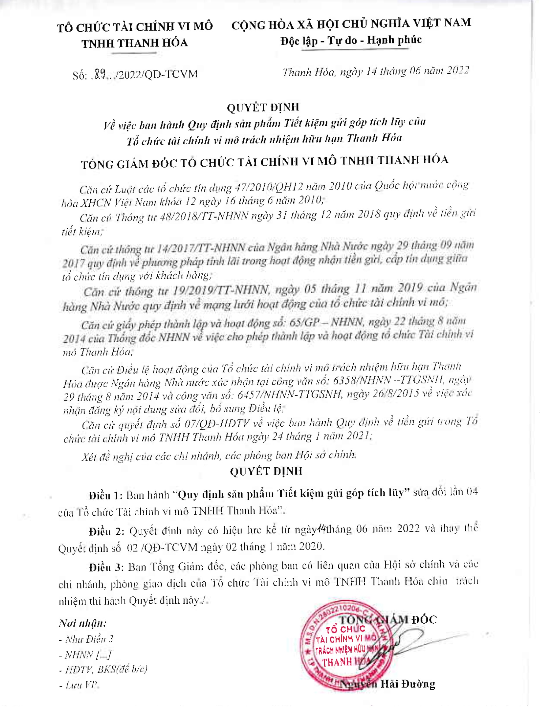 QĐ số 89-2022-QĐ-TCVM vv ban hành Quy định sản phẩm Tiết kiệm gửi góp tích lũy (Sửa đổi lần 04)